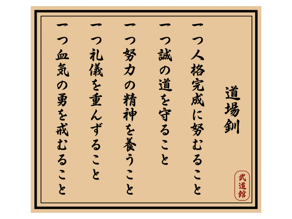 Le but ultime du Karaté-do. Le premier précepte ne donne pas la priorité à la force, la vitesse, le niveau technique ou l’aptitude au combat, mais au perfectionnement du caractère de l’élève. C’est ce sur quoi insistait Maître Funakoshi Gichin dans ses écrits; il raconte une histoire dans laquelle il avait agi en tant que médiateur entre deux villages opposés. En demeurant calme et en agissant de manière contrôlée et rationnelle, Funakoshi proposa un compromis acceptable par les deux parties et la violence avait ainsi pu être évitée. Il considéra ceci comme une preuve que l’entraînement de Karaté avait amélioré son caractère et l’avait rendu capable de trouver une solution pacifique. L’enseignement du Karaté Traditionnel vise à former le caractère de l’athlète et le respect de l’adversaire. Détermination, sincérité, effort, éthique sportive et contrôle de soi sont des valeurs importantes au Dojo. Bref, un Karatéka doit s’efforcer de rechercher le développement autant sur le plan philosophique que celui de la performance. Pour Funakoshi, au-delà d’un simple exercice combinant le physique et le mental, le Karaté-do est un mode de vie qui forge un tempérament capable de faire face à n’importe laquelle adversité de la vie courante. Les quatre règles suivantes sont nécessaires pour l’accomplissement de ce premier précepte.