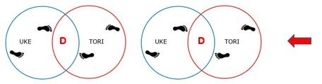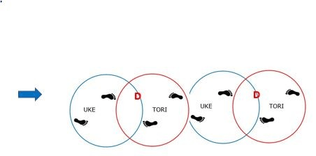 Si Tori avance vers Uke, ce dernier va reculer et la distance restera la même, donc point d’avantage pour Tori ni pour Uke.