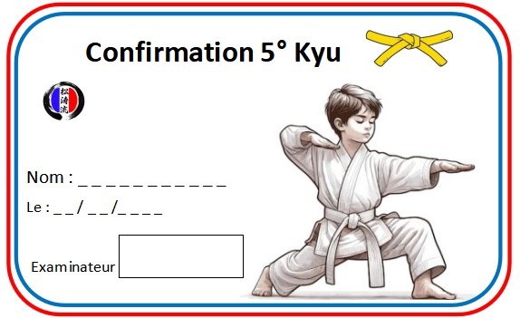 Présentation test Ceinture jaune Auteur/autrice de la publication :GenBudo Publication publiée :10/03/2026 Post category:Kyu 5 Commentaires de la publication :0 commentaire Direction vers la ceinture jauneépreuves en groupe et en individuel. Bonne prestation à vous ! 1/ Kihon (groupe)2/ Gohon Kumite 3/ Kata (Tokui)4/ Ten No Kata Uke5/ Kata Heian Shodan6/ Bunkaï Heian Shodan 7/ Résultat 8/ Remise Diplôme Remarques et conseils pour chaque pratiquant individuellement9/ Goûter et verre de l’amitié Vous devriez également aimer Cours Karate de blanche à jaune 47 09/03/2026 Cours Karate de blanche à jaune 22 07/03/2026 Cours Karate de blanche à jaune 6 06/03/2026 Laisser un commentaire Annuler la réponseCommentEnter your name or username to comment Enter your email address to comment Saisir l’URL de votre site (facultatif) Enregistrer mon nom, mon e-mail et mon site dans le navigateur pour mon prochain commentaire.