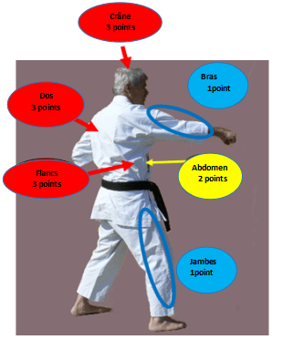 - L’Arbitre central est le seul à diriger les combats (début et fin de combat), c’est lui qui décide et annonce les points, les pénalités, les avertissements.