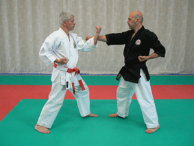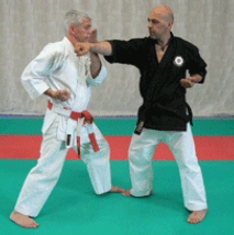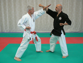 C’est une défense faite avec le tranchant externe de la main (Shuto ou sabre de main – arme naturelle). Cette défense typique du Karate est très puissante et, bien exécutée, est capable de casser le poignet d’un adversaire. Elle est surtout destinée à bloquer une attaque de poing de niveau moyen et quelque fois un peu plus haut. Sa trajectoire circulaire allant de l’intérieur vers l’extérieur au nivea haut est de grande amplitude, ce qui lui confère sa puissance.